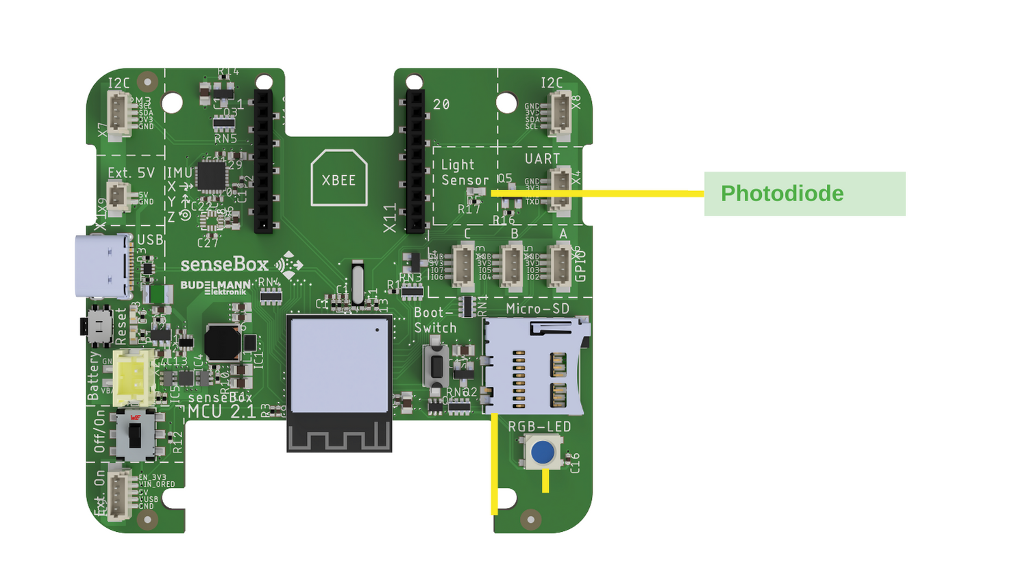 Die Photodiode ist auf der MCU S2 verbaut! Du musst hier also nichts weiter anschließen.