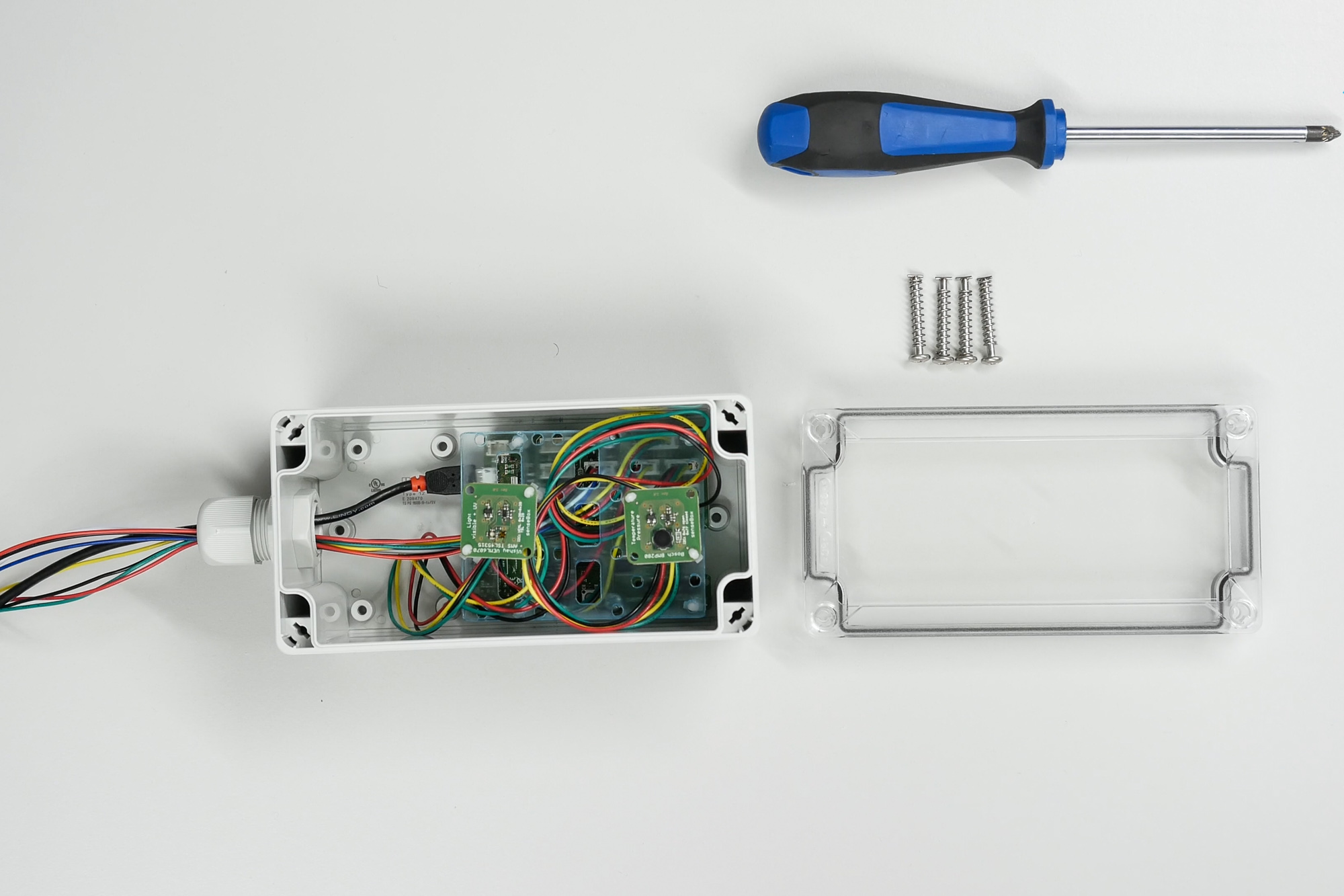 Nun werden noch die Schnellverschlussschrauben eingedreht und damit die senseBox verschlossen.