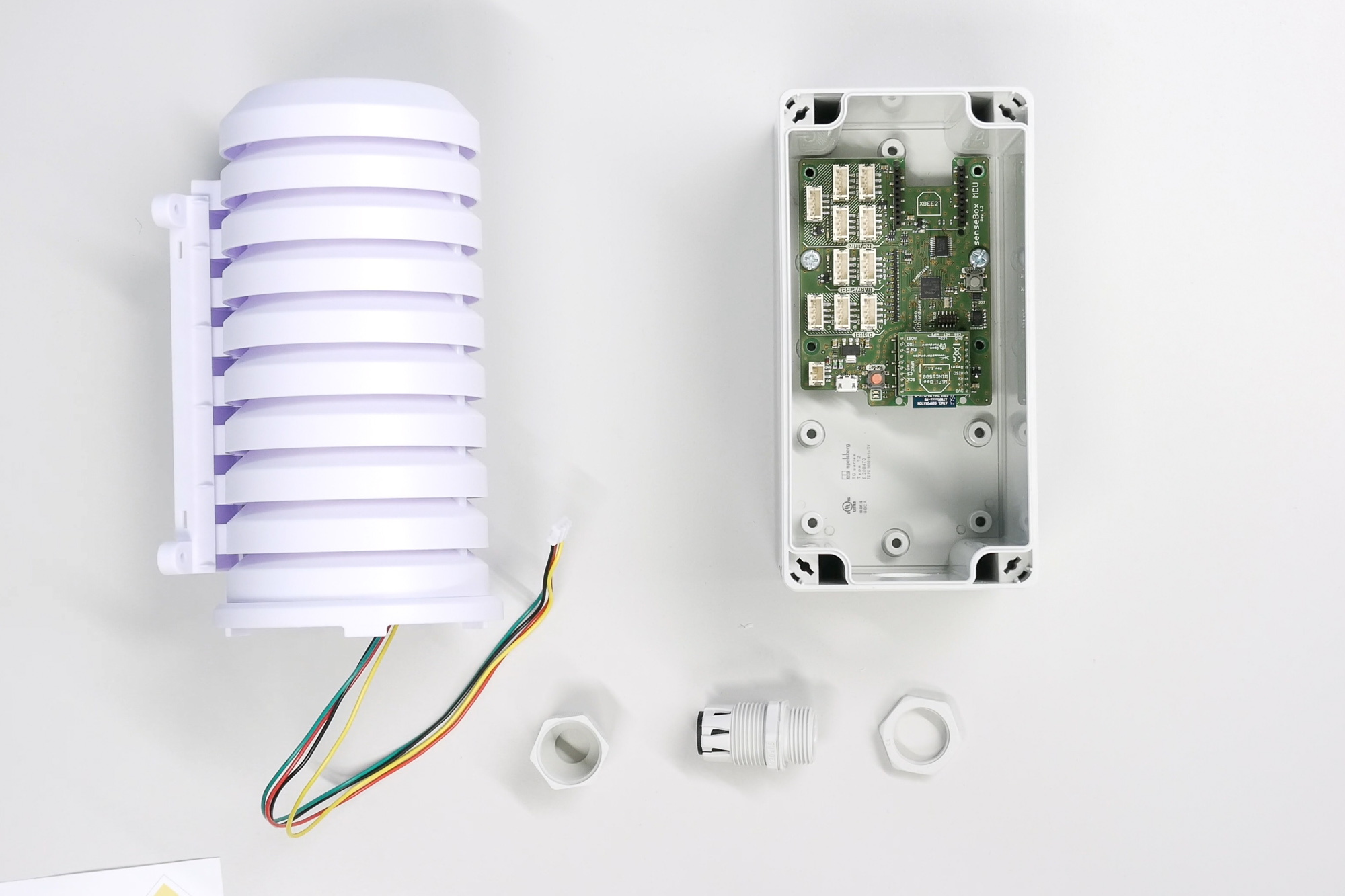 Now, assemble the radiation shield housing. Later, the sensor will be connected to the senseBox microcontroller.