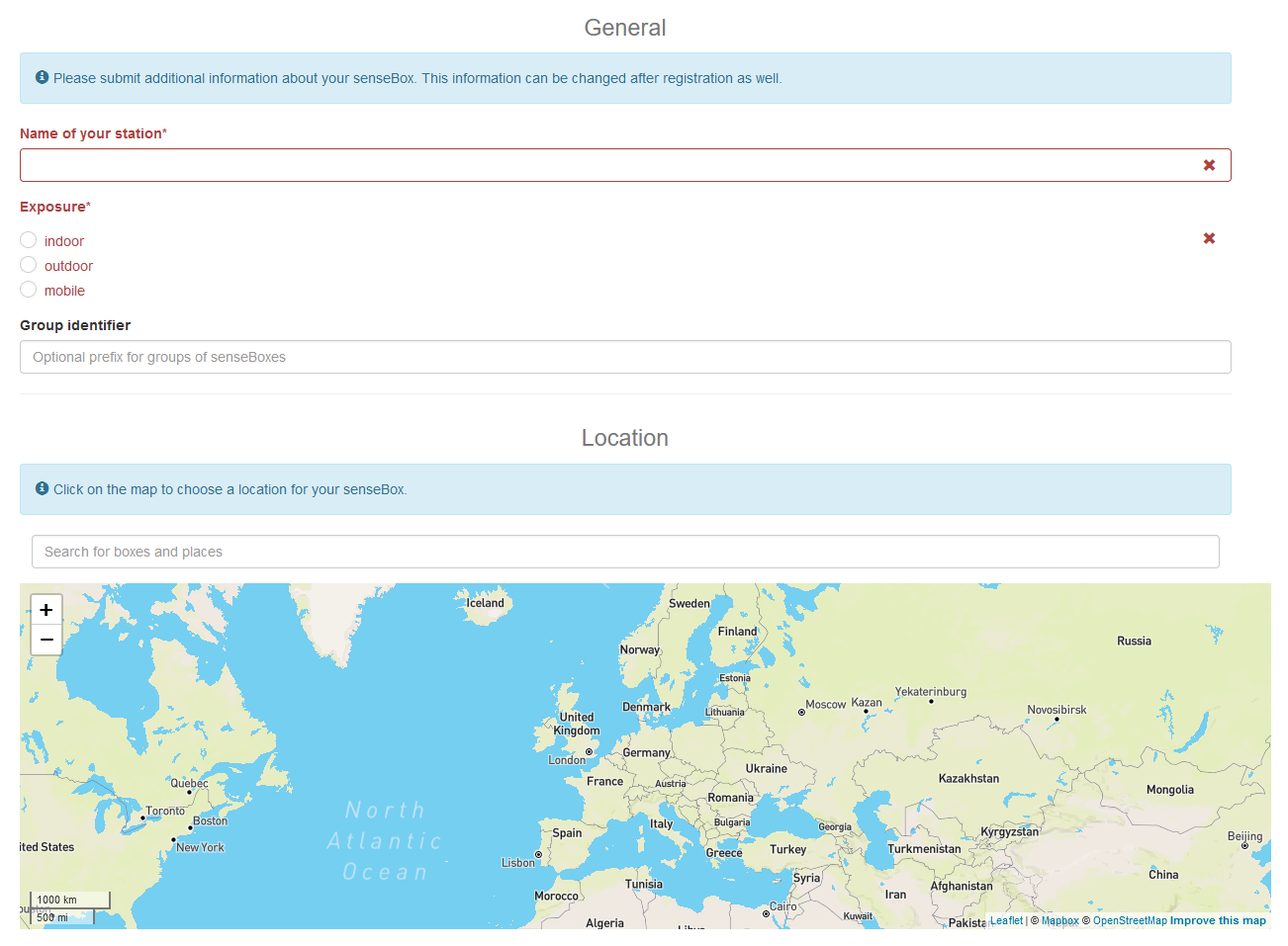 - The location where you want to place your senseBox (you can also determine your location automatically)